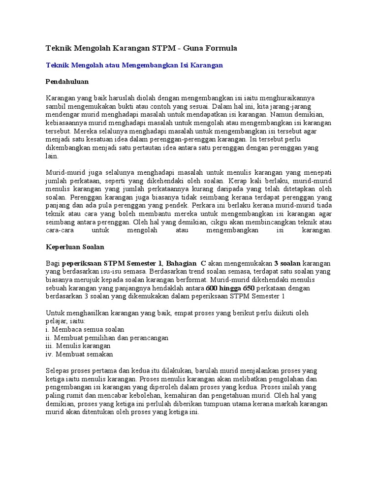 Semoga perkongsian bahan-bahan rujukan panduan bahan pembelajaran dan pengajaran contoh-contoh karangan sumber rujukan STPM Sijil Tinggi Persekolahan Malaysia tingkatan 6 dalam post di blog Bumi Gemilang berguna dan dapat. Contoh karangan perpaduan kaum bahasa melayu terbaik bagi pt3 spm stpm. Langkah-langkah tertentu perlu dilaksanakan untuk membendung masalah.